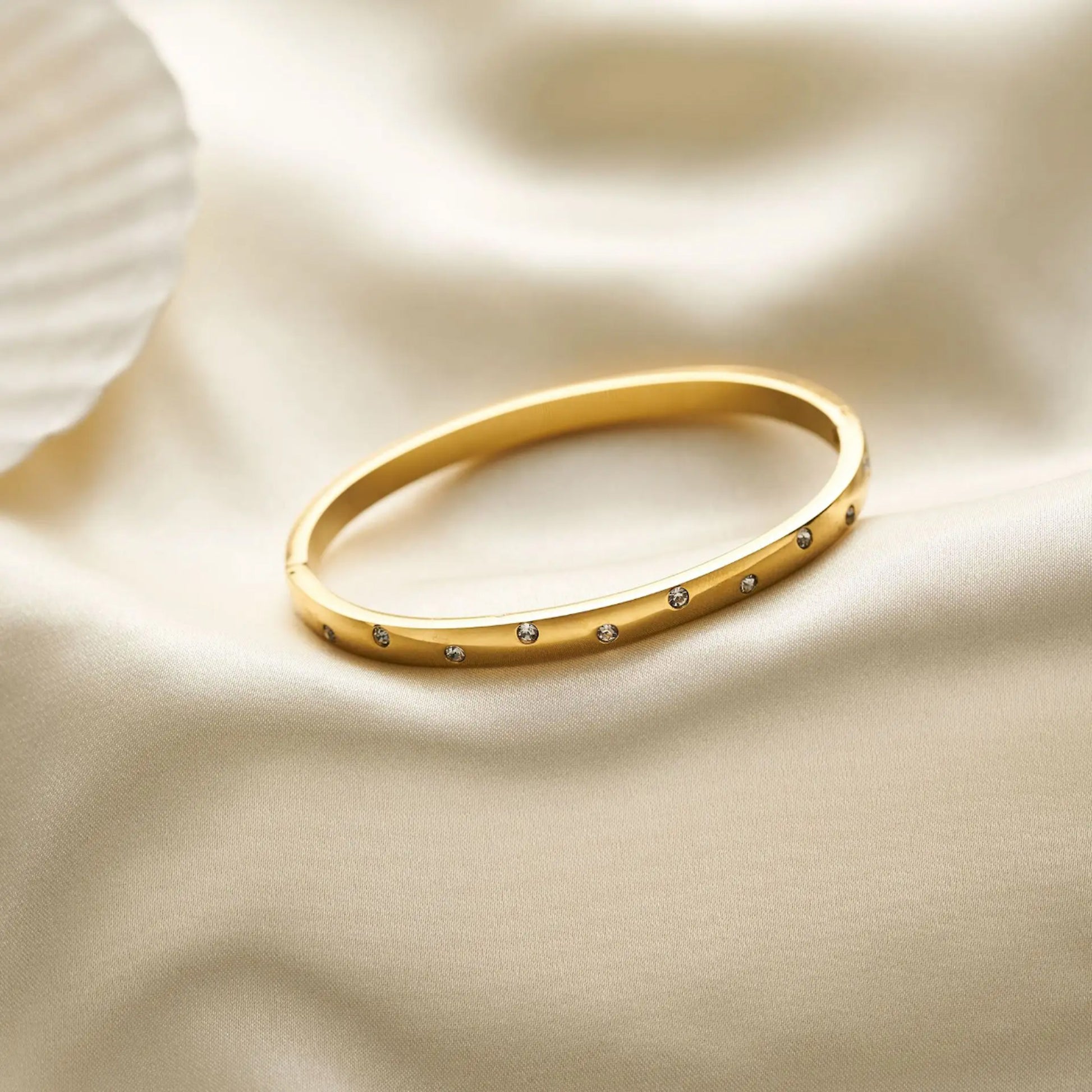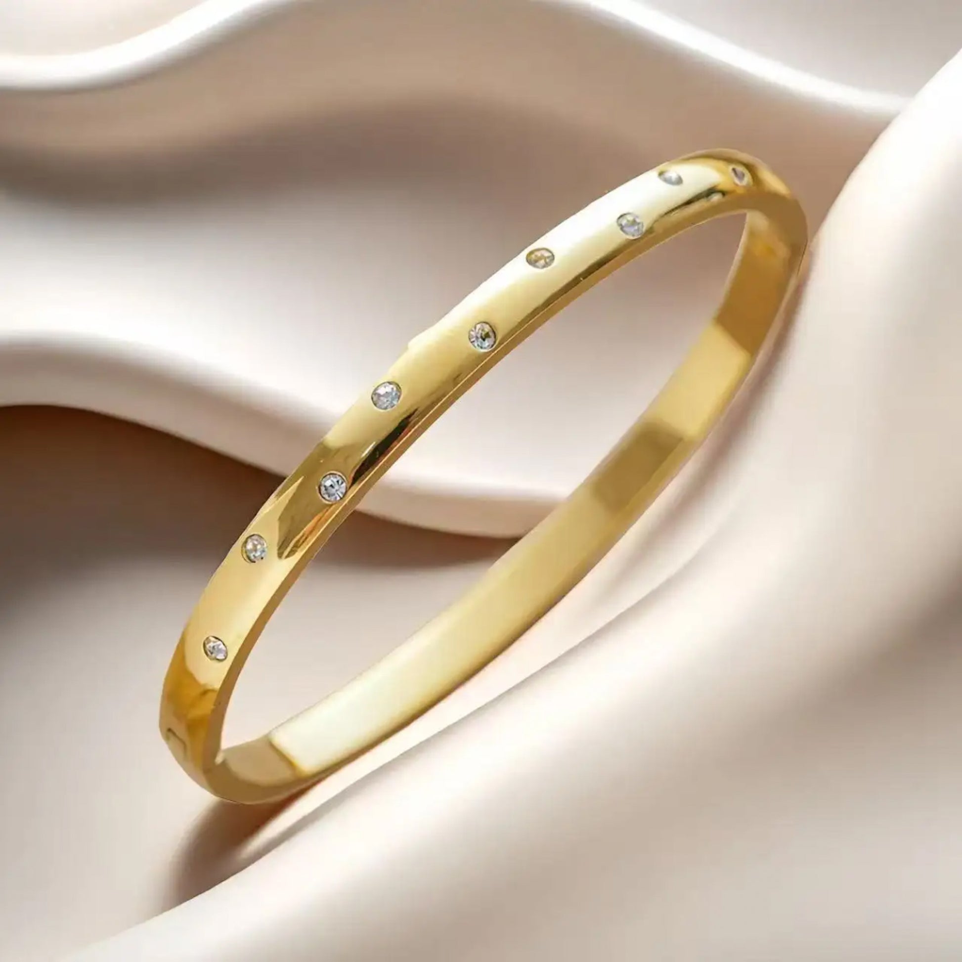 ✨ Anti-Tarnish Gold Plated Kada Bracelet with Minimal Crystal Detailing