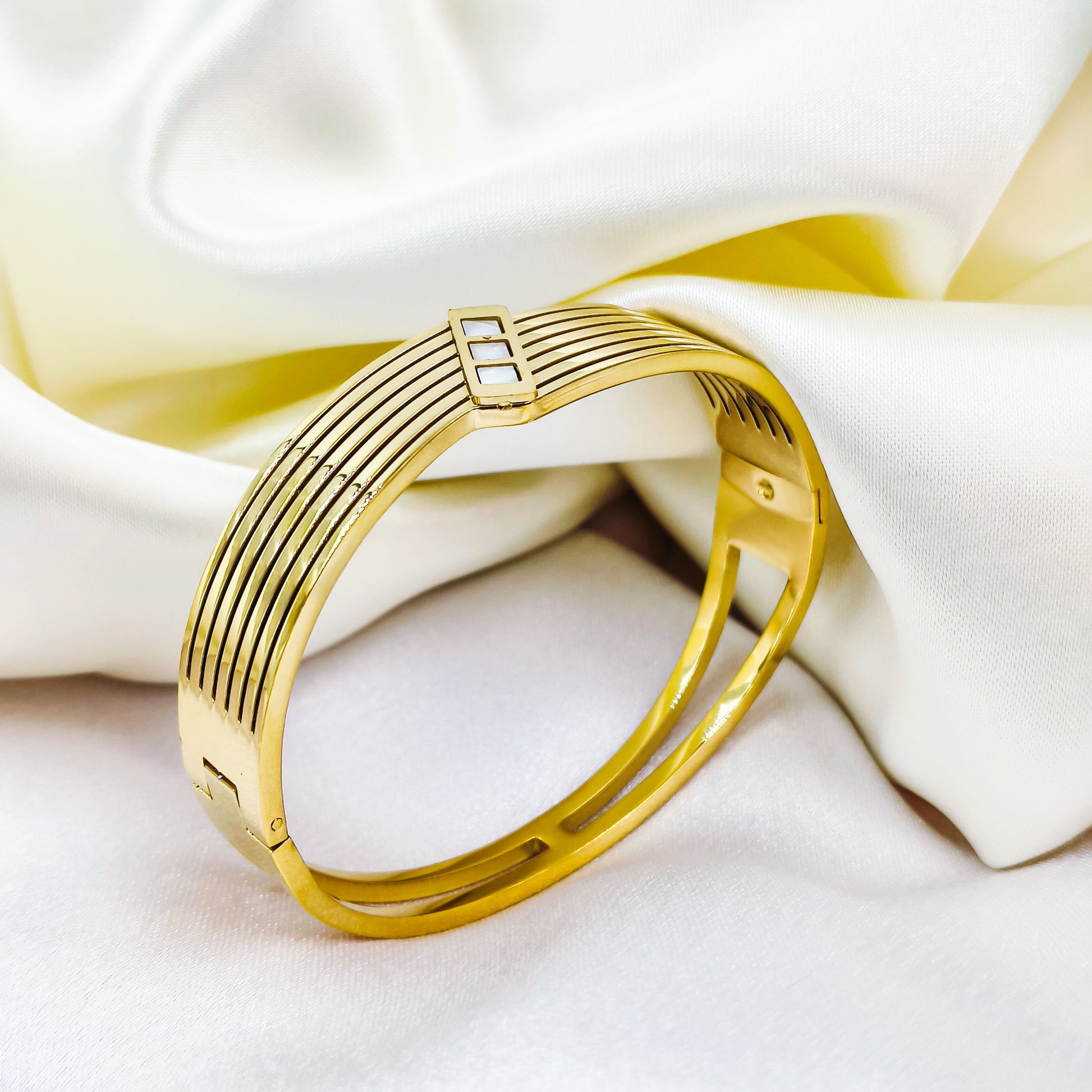 Anti-Tarnish Gold Plated Geometric Kada Bracelet – Regular Size 2.8 | True Shiny Jewells