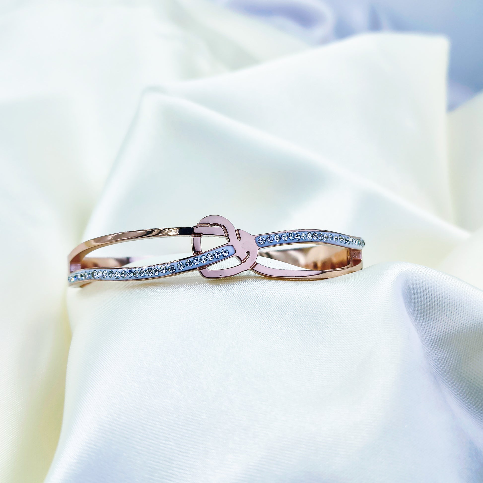 Anti-Tarnish Rose Gold Plated Kada Bracelet with Stone Detailing – Baby Size 2.6 | True Shiny Jewells