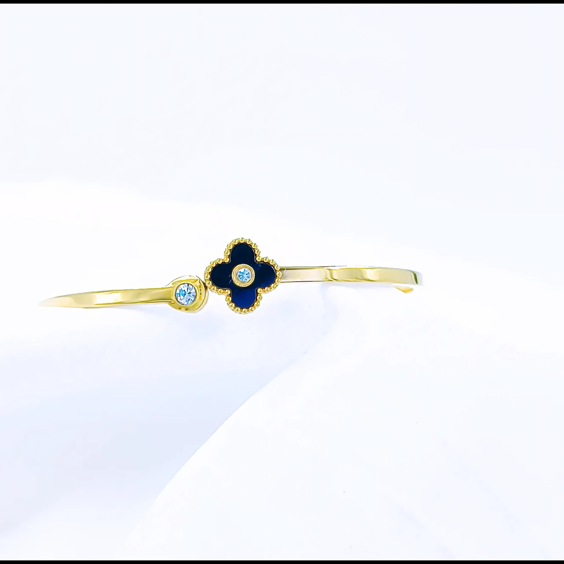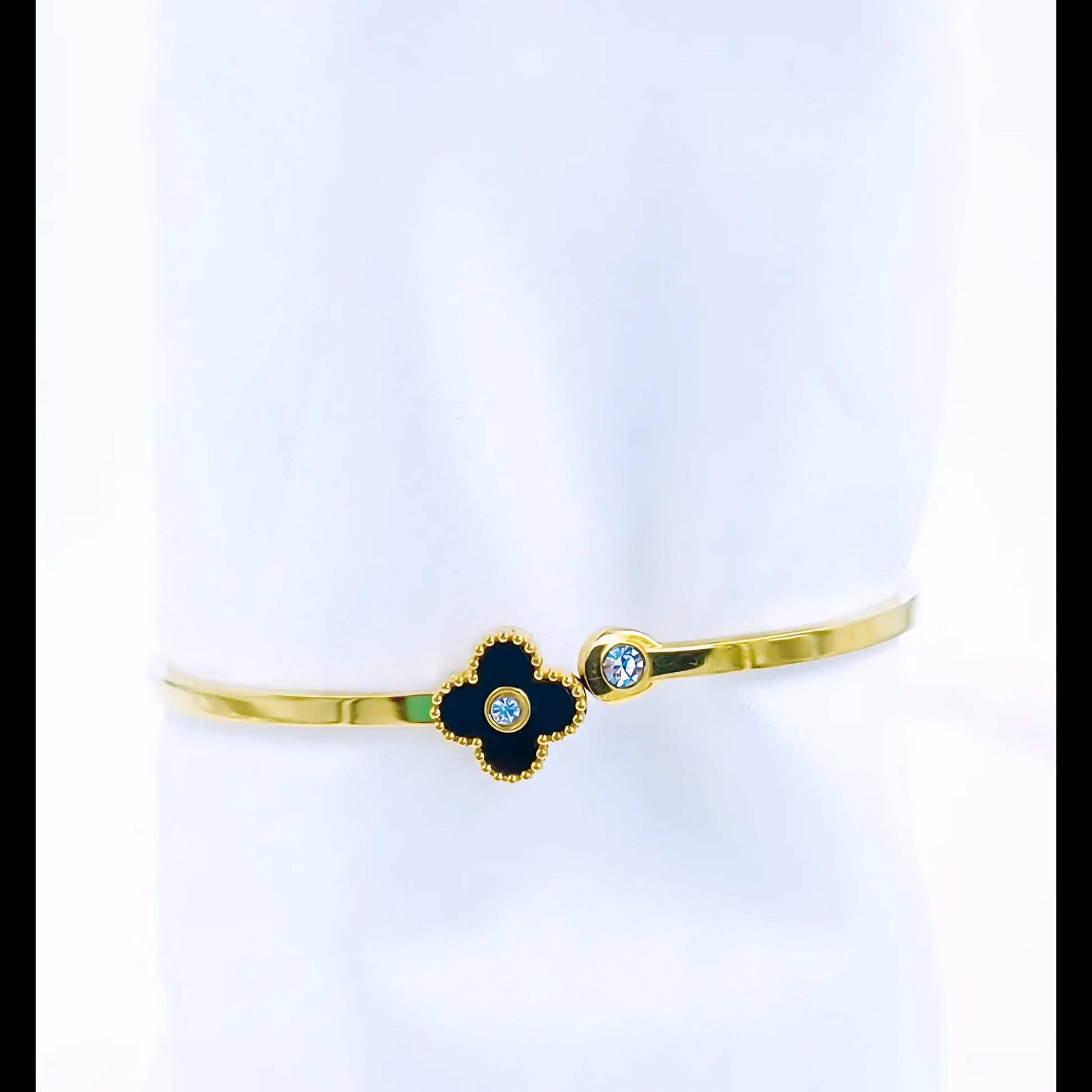 Black Clover Stone Anti-Tarnish Gold Plated Kada / Bracelet