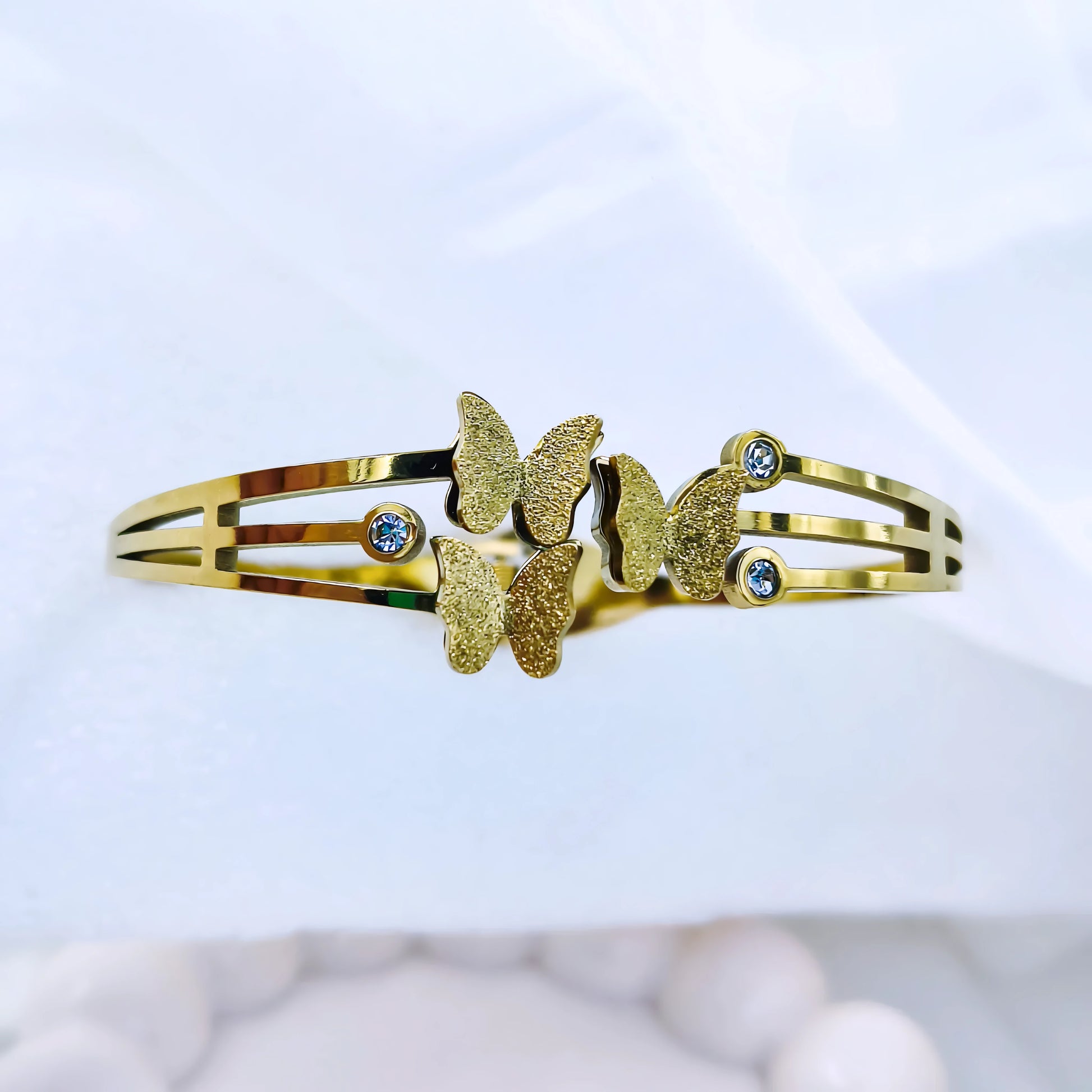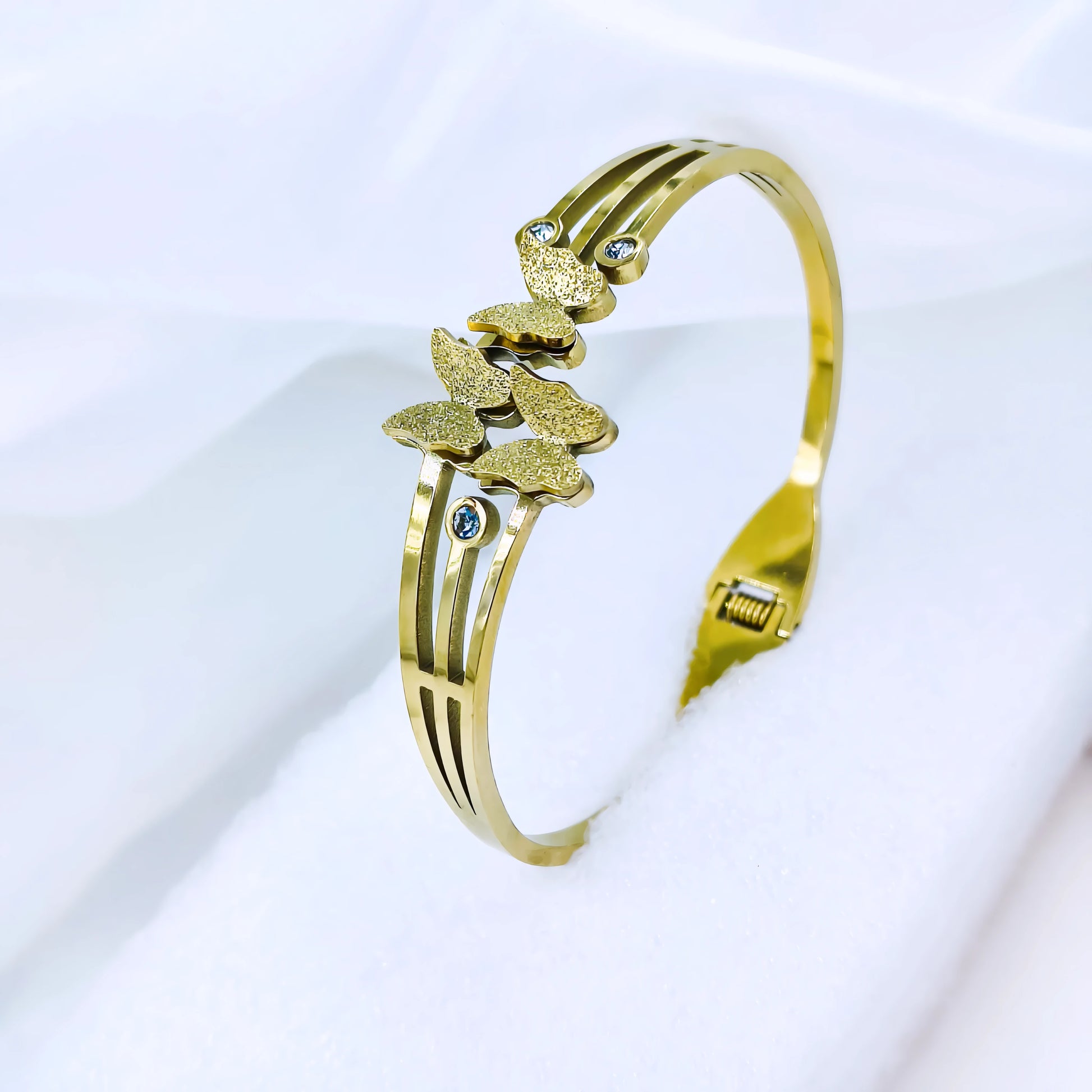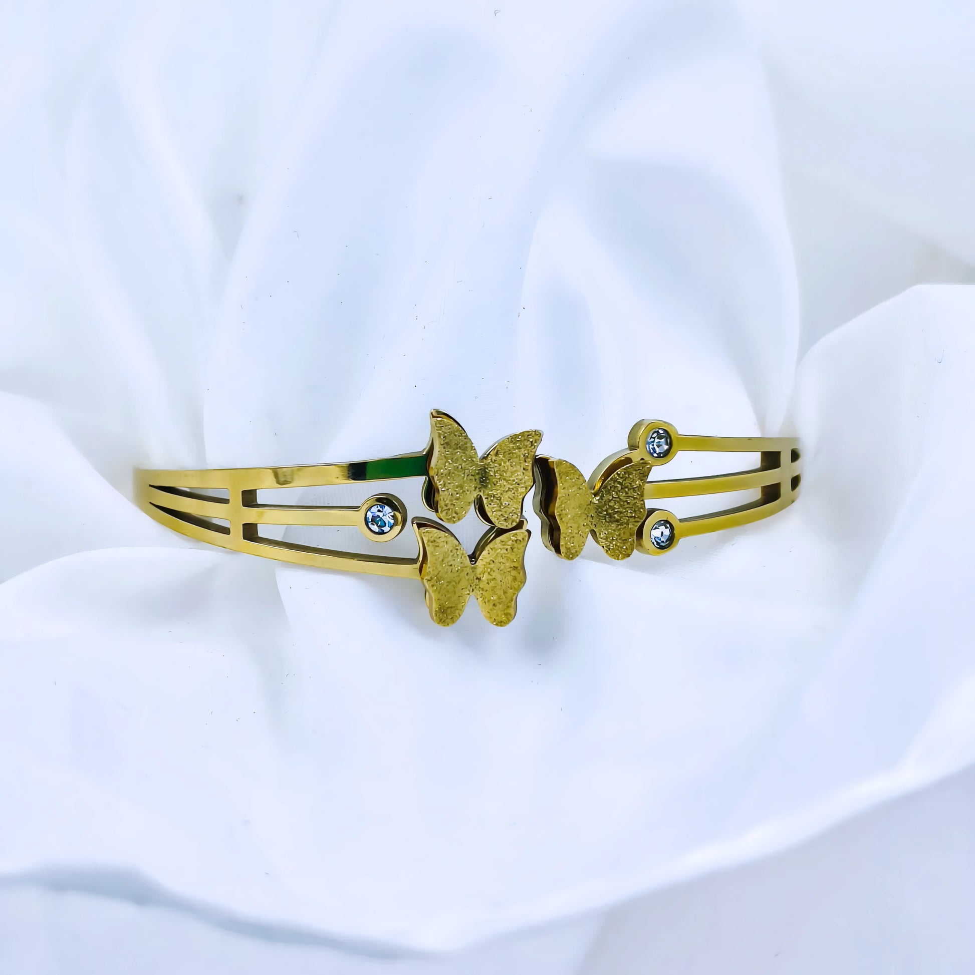 Cluster Butterfly Crystal Accent Anti-Tarnish Gold Plated Kada / Bracelet