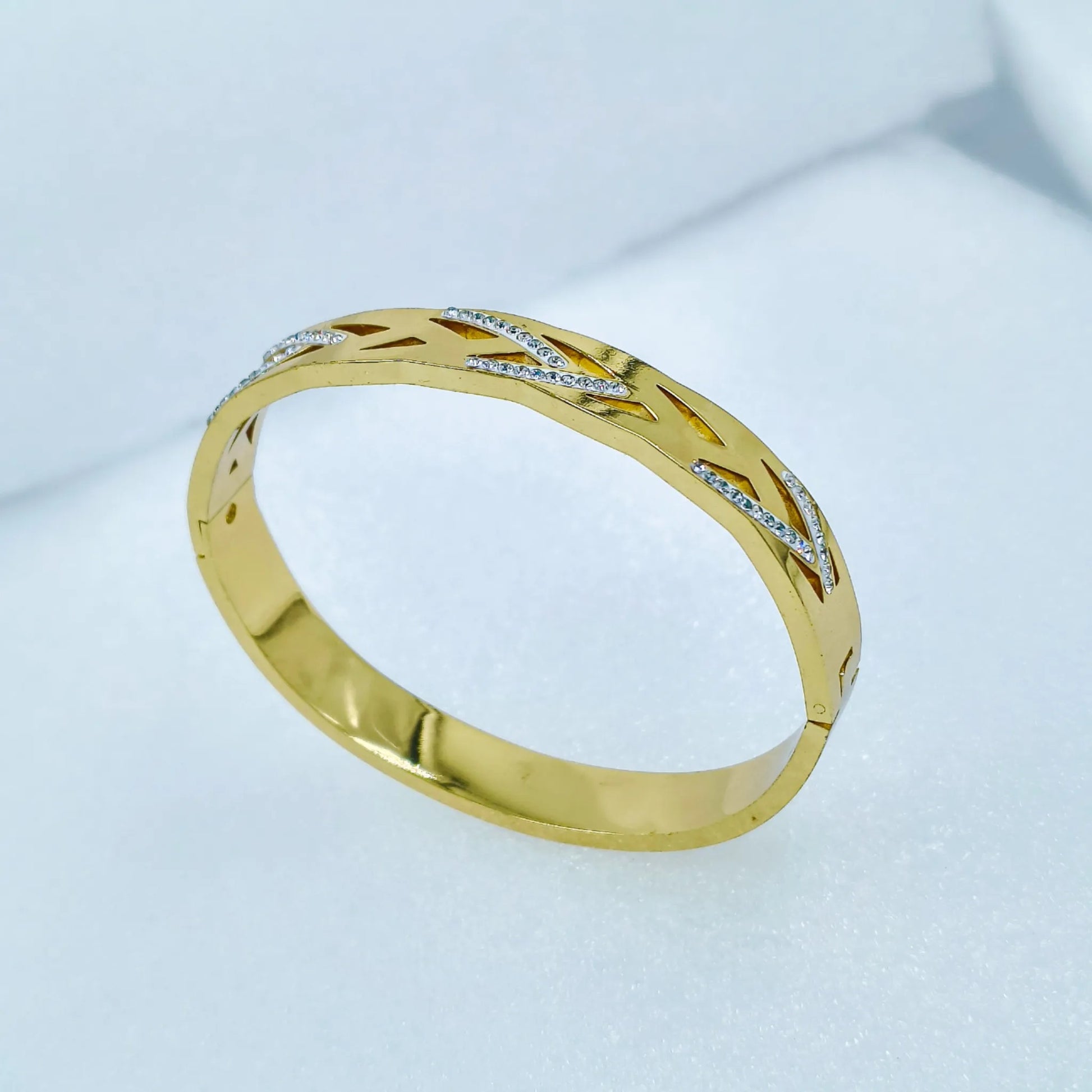Add timeless elegance to your jewellery collection with this gold plated anti-tarnish kada bracelet featuring a stunning leaf-inspired design with sparkling stone accents. Crafted for lasting shine and durability, it remains tarnish-free even with regular wear. Perfect for festive occasions, parties, or daily elegance, this bracelet beautifully complements both traditional and modern outfits — making it a must-have accessory or a thoughtful gift for your loved ones. ✨🌿