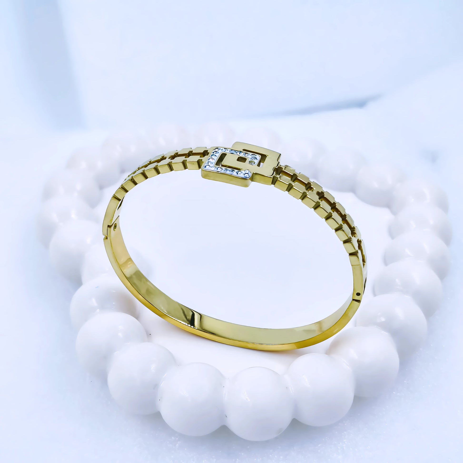 Geometric Chain Crystal Accent Anti-Tarnish Gold Plated Kada / Bracelet