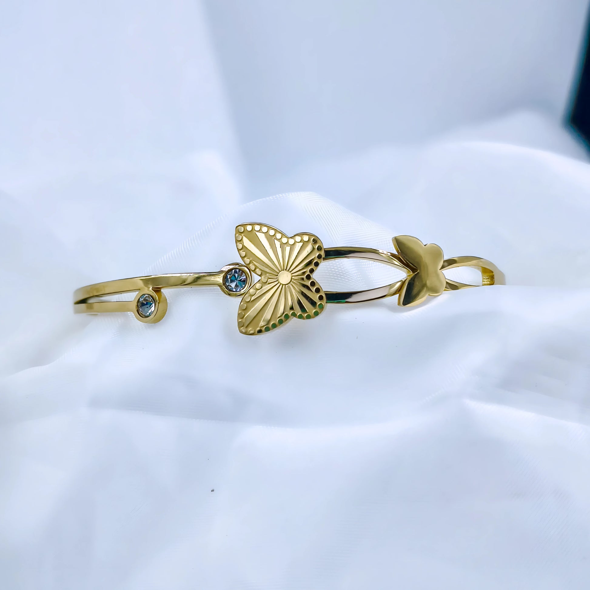 Gold-Plated Butterfly Kada Bracelet for Women with Stone Detailing | Anti-Tarnish Jewelry