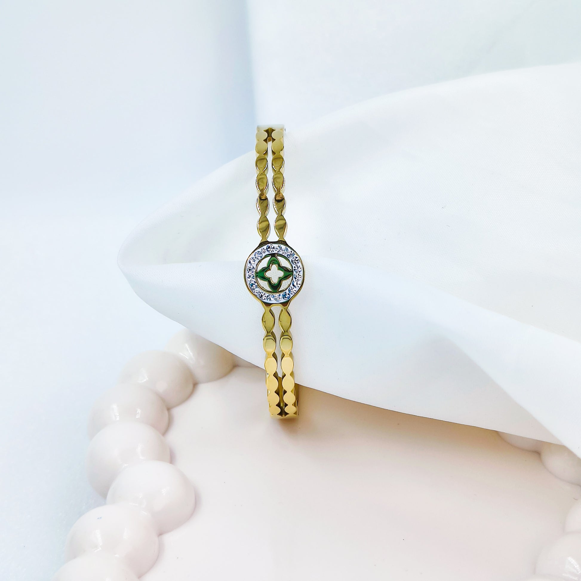 Gold Plated Clover Circle Kada – Anti Tarnish (Regular Size 2.6 & 2.8)