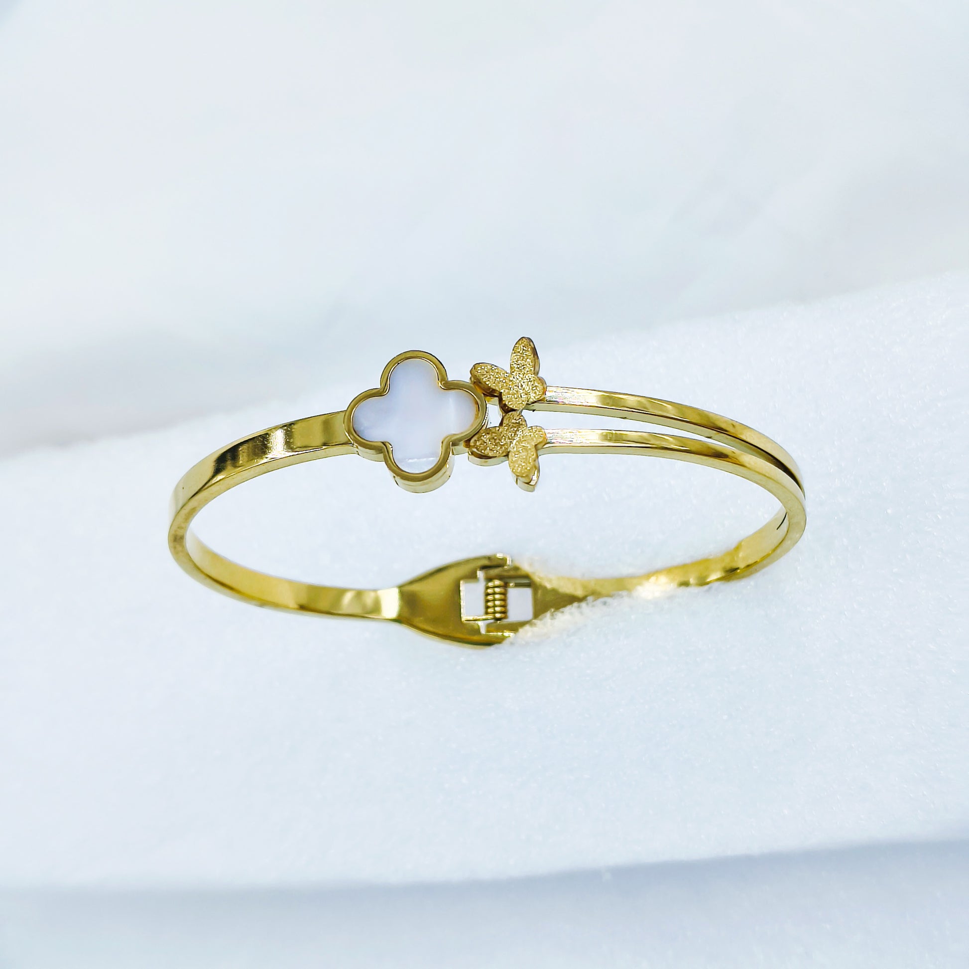 Gold Plated Clover Kada with Butterfly Design – Anti Tarnish (Regular Size 2.6 & 2.8)