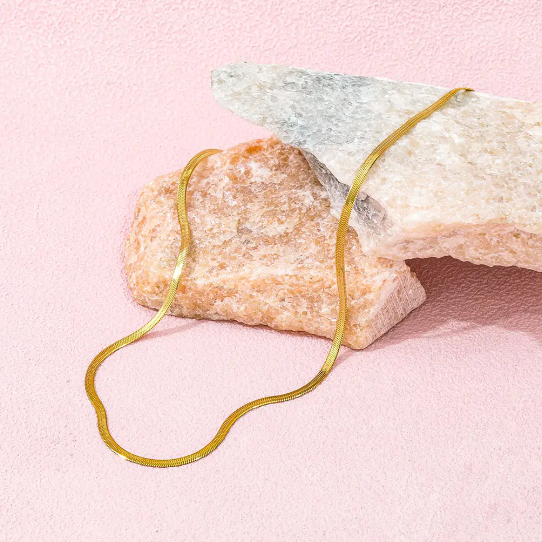 Minimal and sleek, this 2mm gold-plated snake chain necklace features a smooth finish and an adjustable length of 35cm + 5cm. Coated with anti-tarnish protection, it's perfect for layering or wearing solo with any outfit.