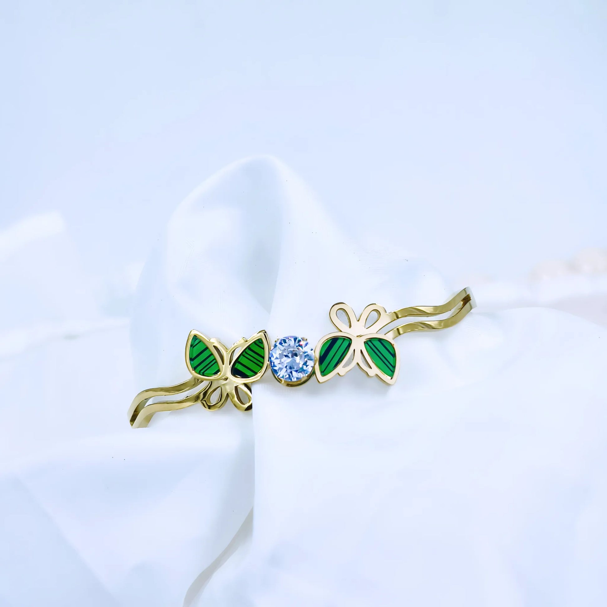 Green Butterfly Crystal Anti-Tarnish Gold Plated Kada / Bracelet