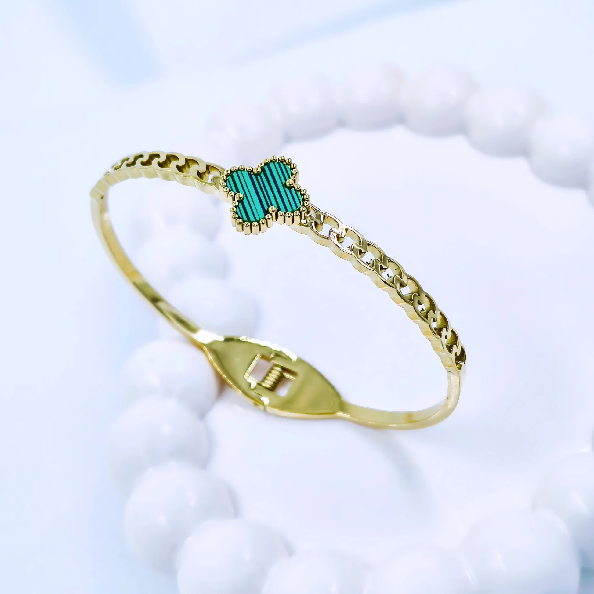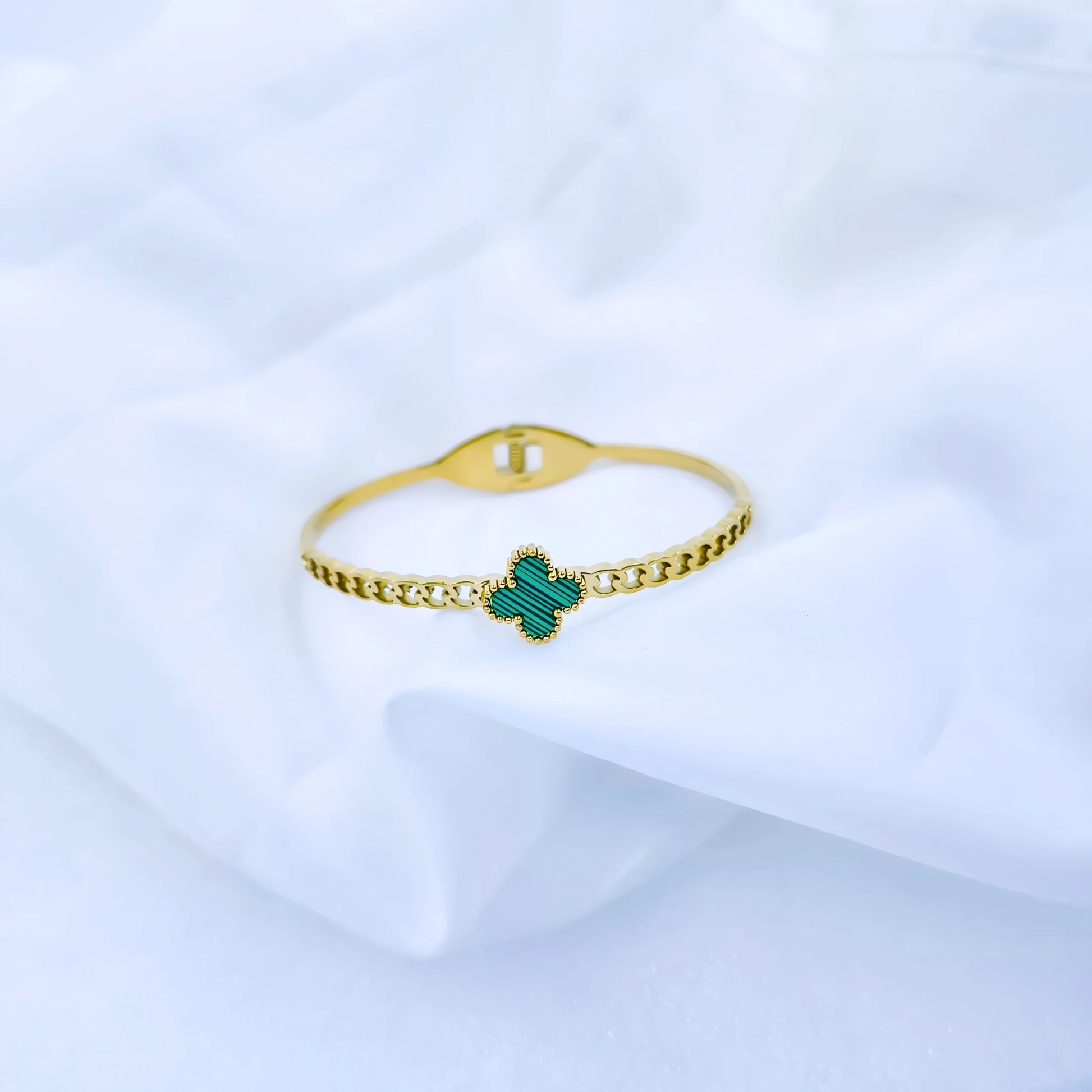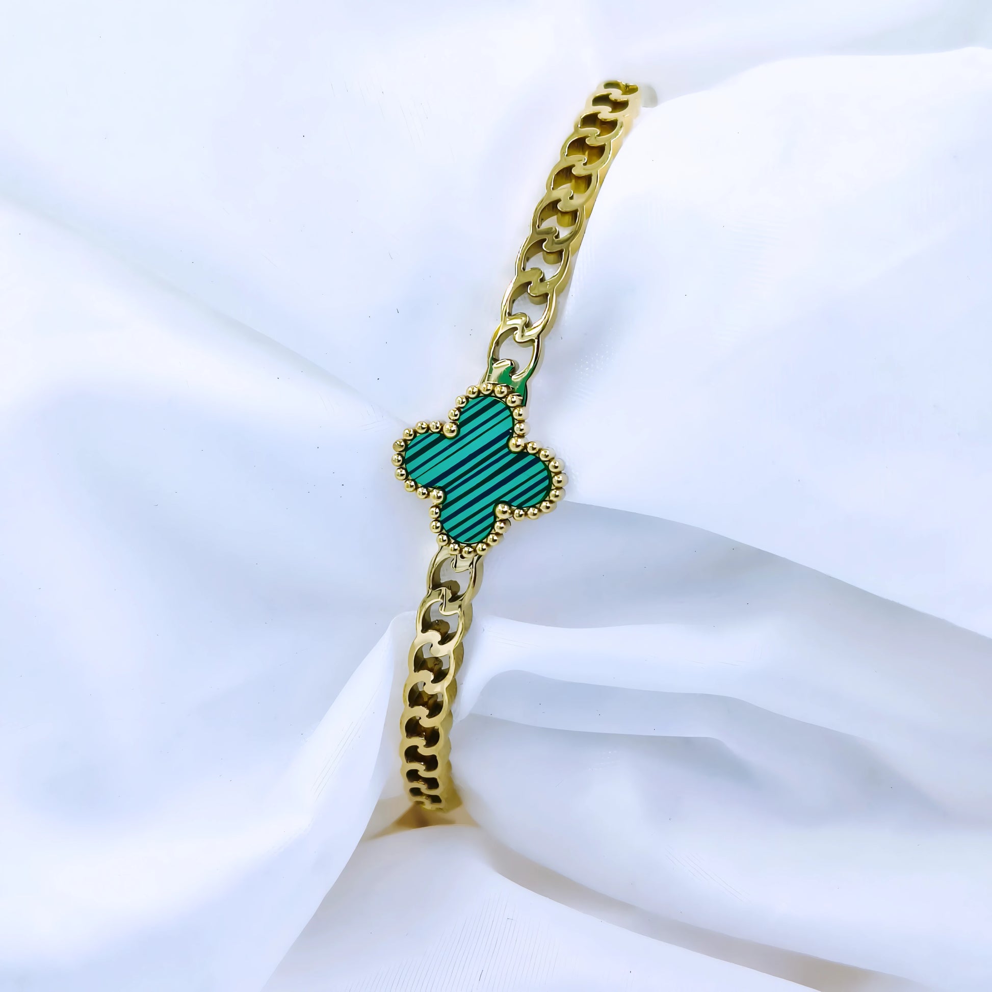 Green Clover Charm Anti-Tarnish Gold Plated Chain Bracelet / Kada