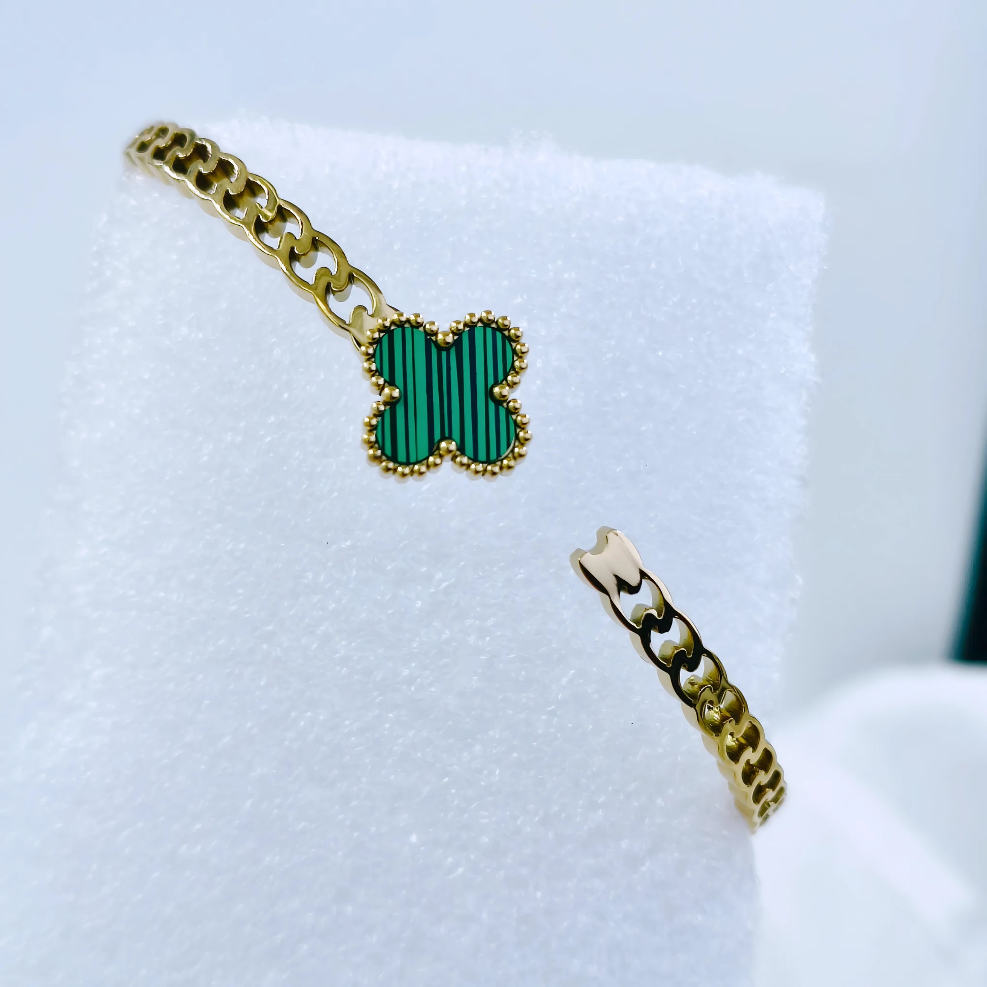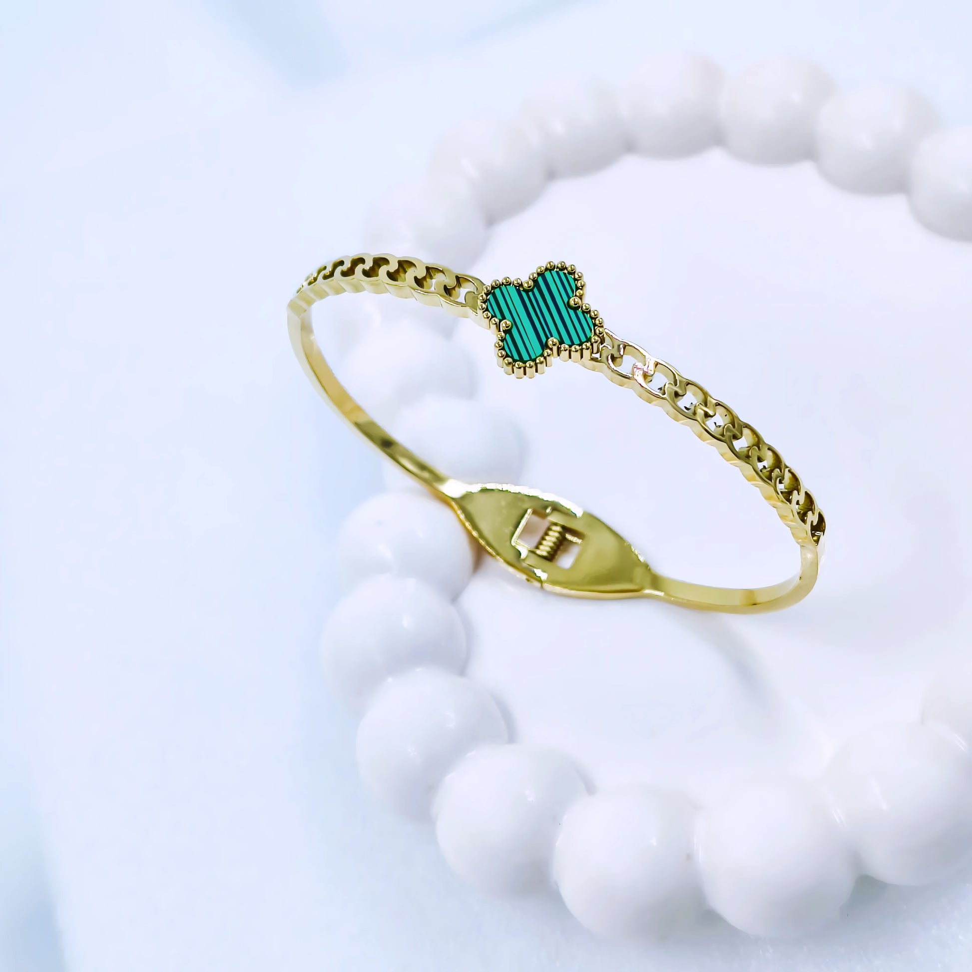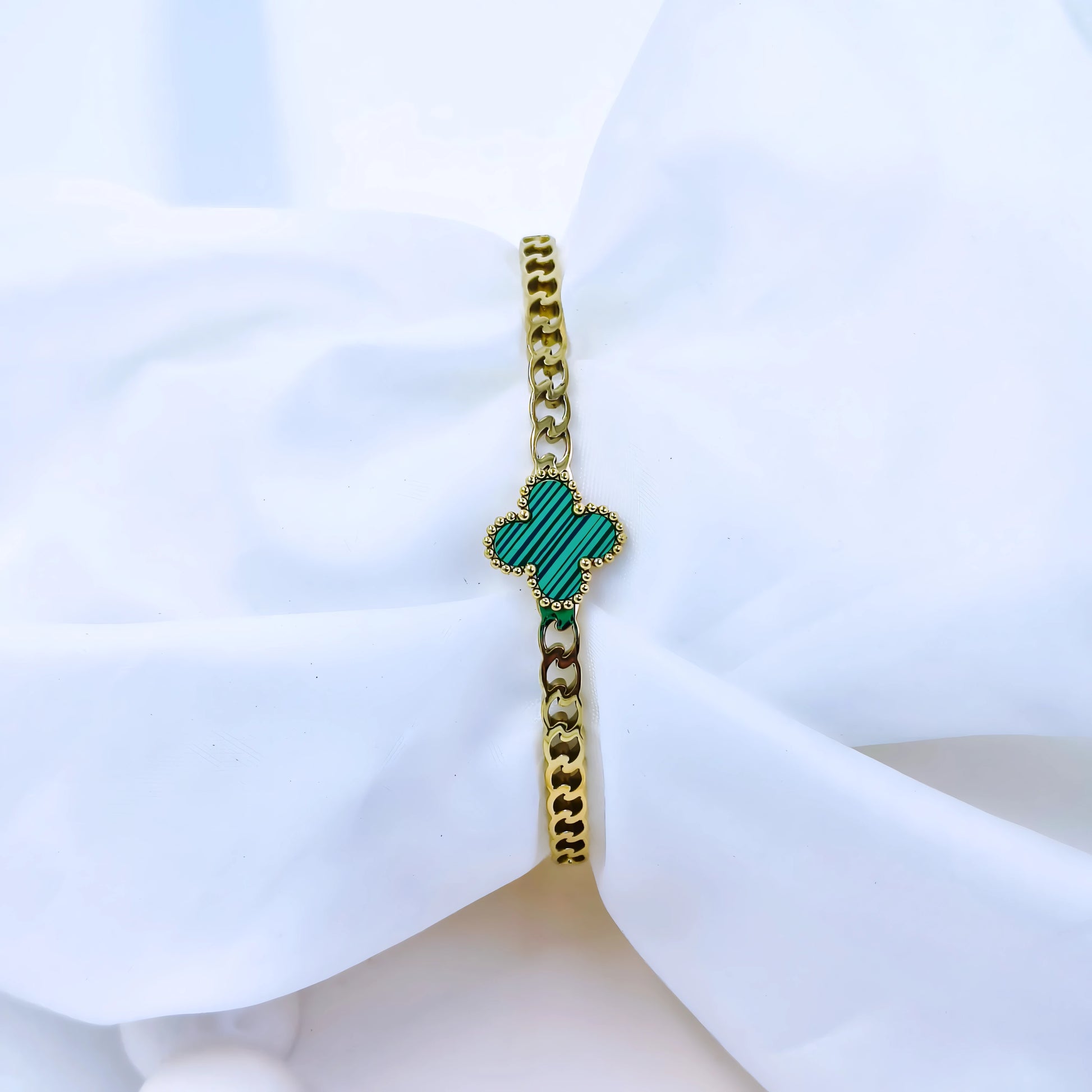 Green Clover Charm Anti-Tarnish Gold Plated Chain Bracelet / Kada