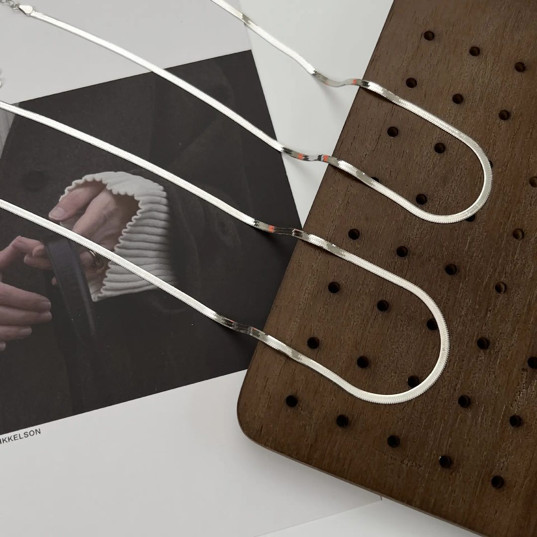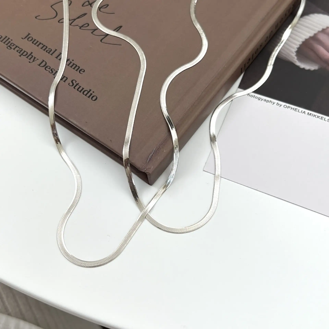 Silver-Plated Flat Snake Chain Necklace – Anti-Tarnish Finish
