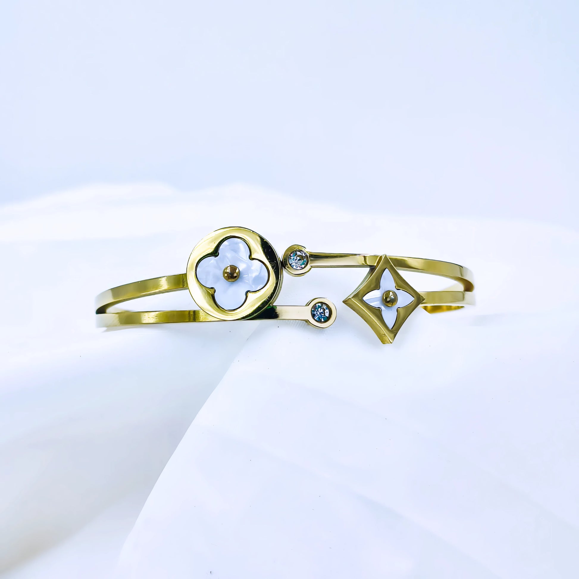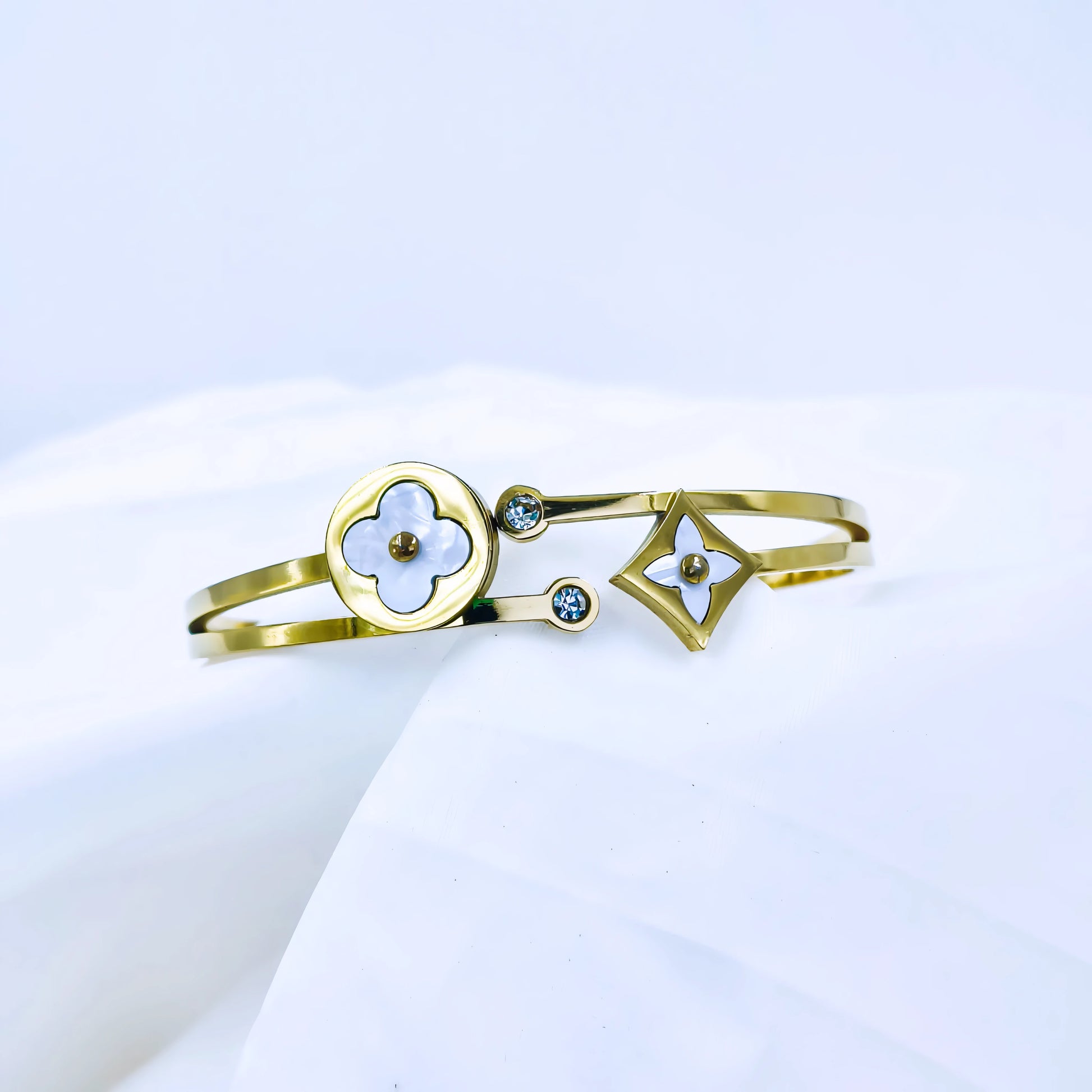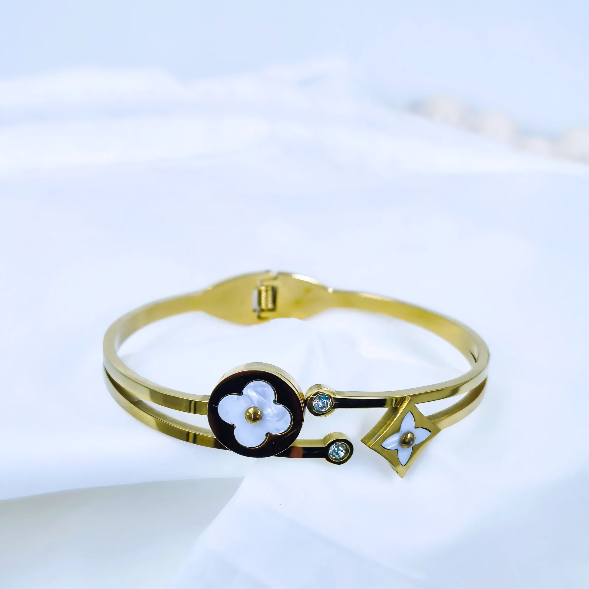 White Clover & Diamond Shape Anti-Tarnish Gold Plated Kada / Bracelet